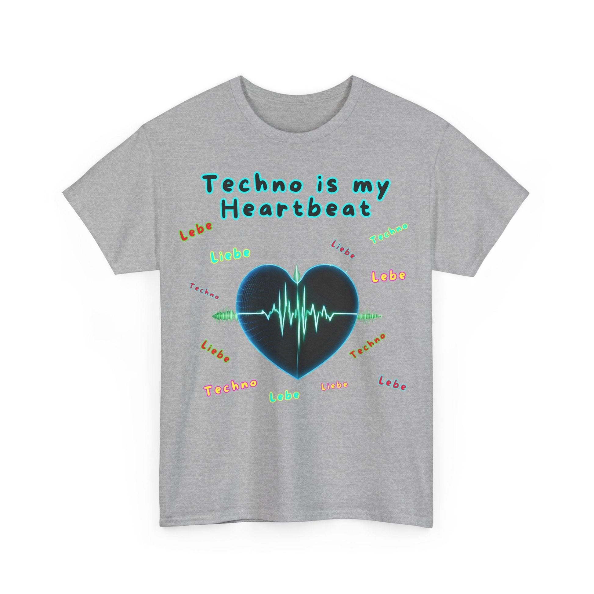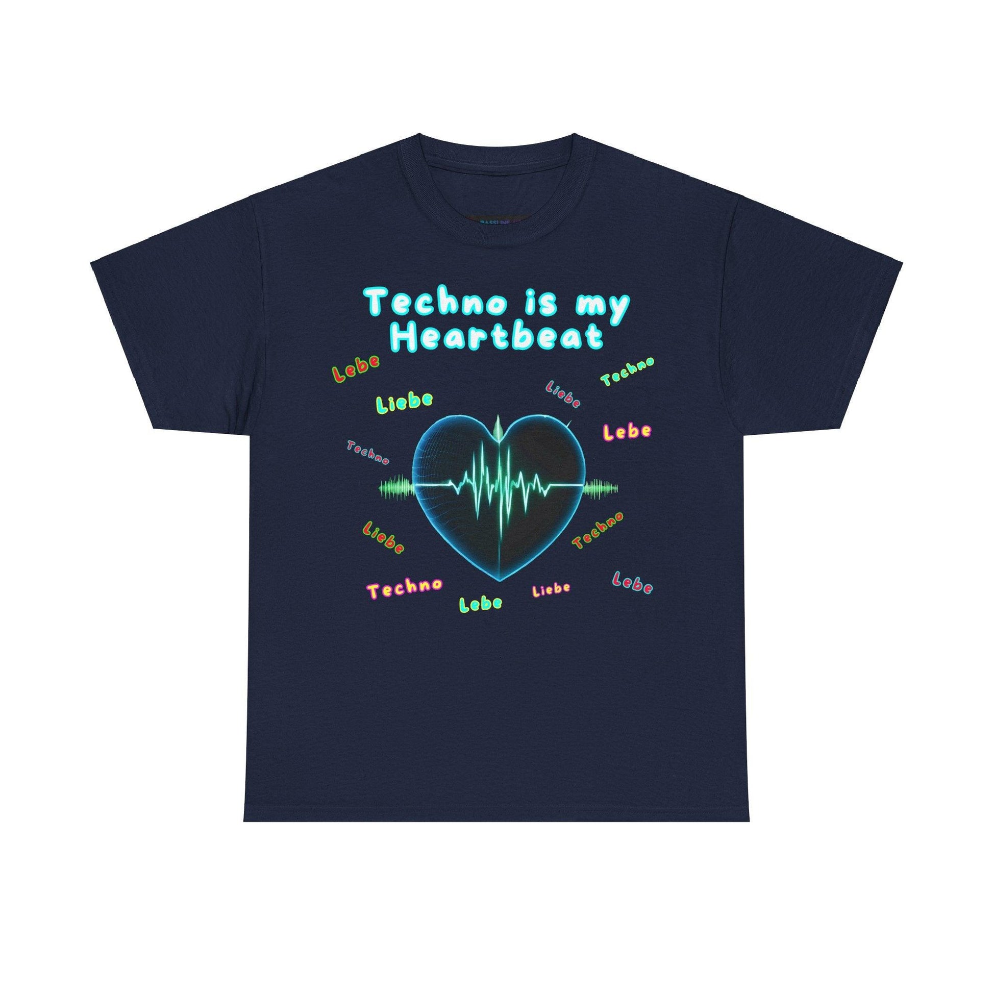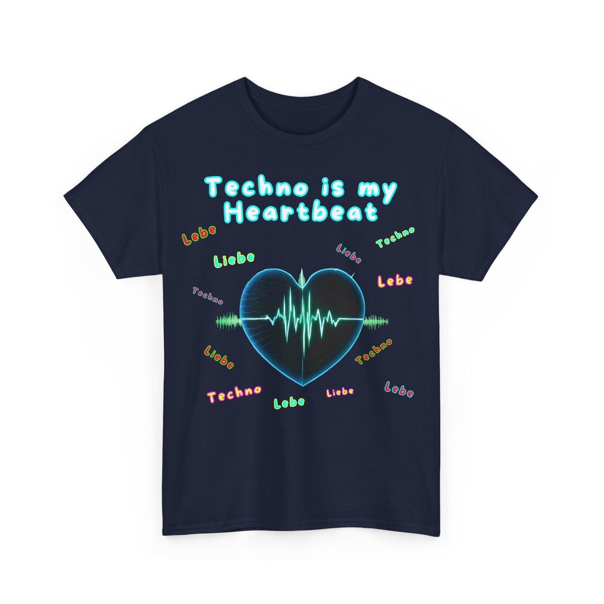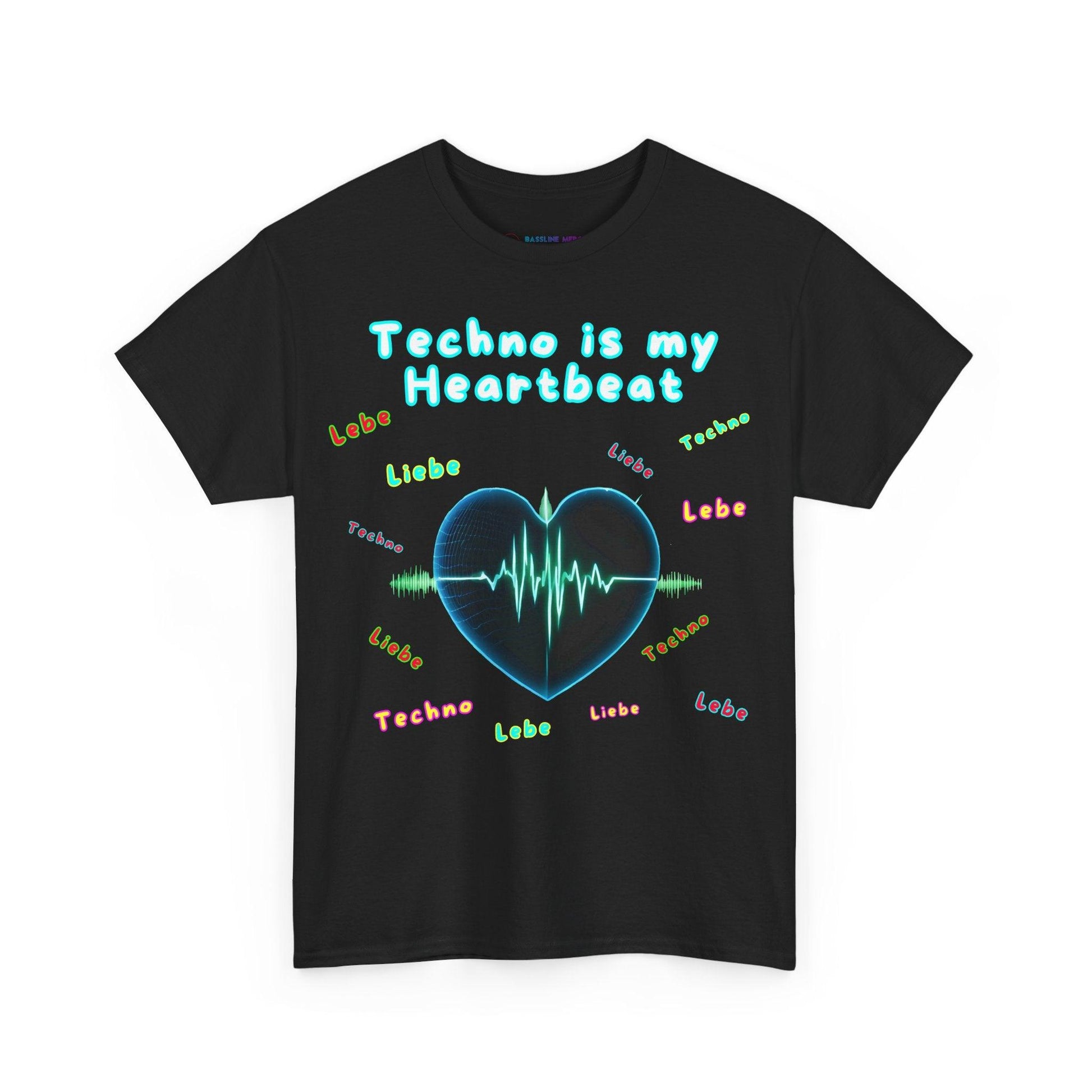 Ein leuchtend grünes Neon-Herz mit pulsierenden Schallwellen, die den Rhythmus der Techno-Musik darstellen, begleitet vom Text „Techno is my Heartbeat“. Dieses T-Shirt strahlt eine energiegeladene und musikliebende Atmosphäre aus, perfekt für Techno-Musik-Enthusiasten. Es ist eine großartige Ergänzung für deine Garderobe, ideal für Musikfestivals, Konzerte oder den lässigen Alltag.